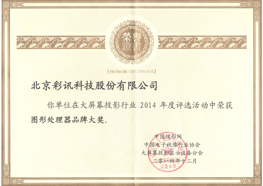 投影時代網年度優秀品牌獎證書