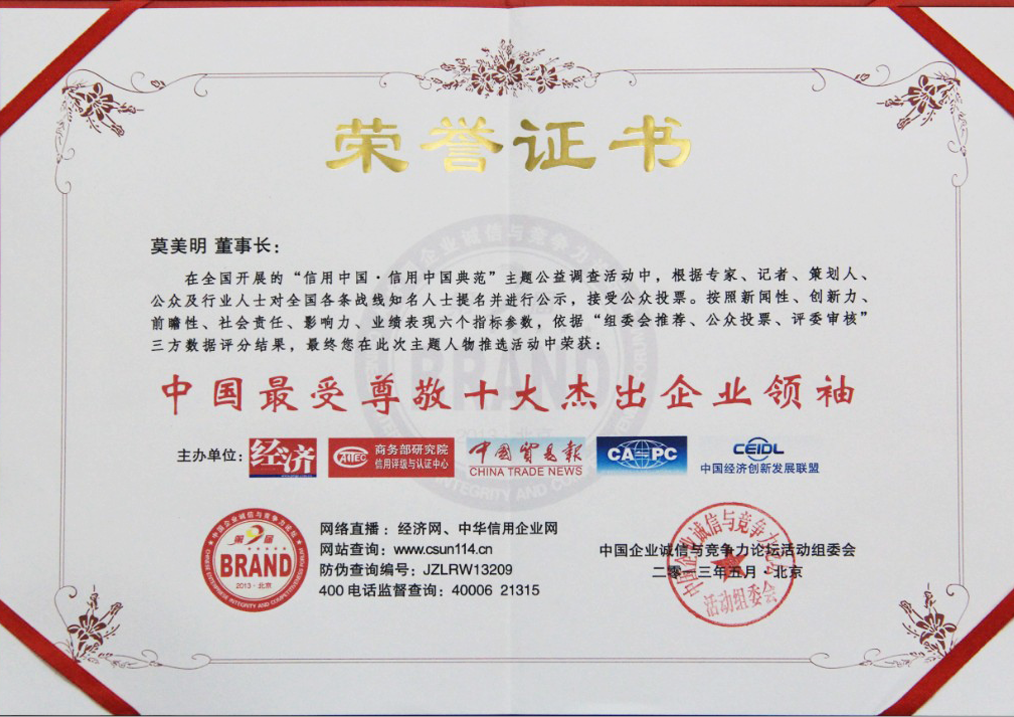 中國最受尊敬十大杰出企業領袖...